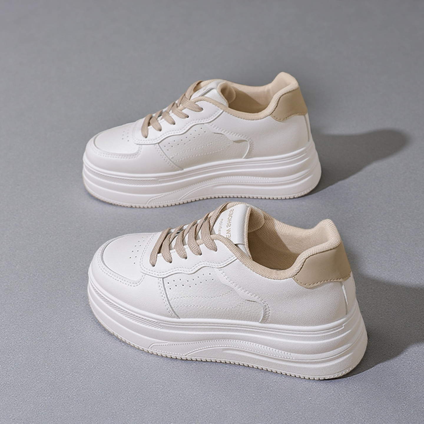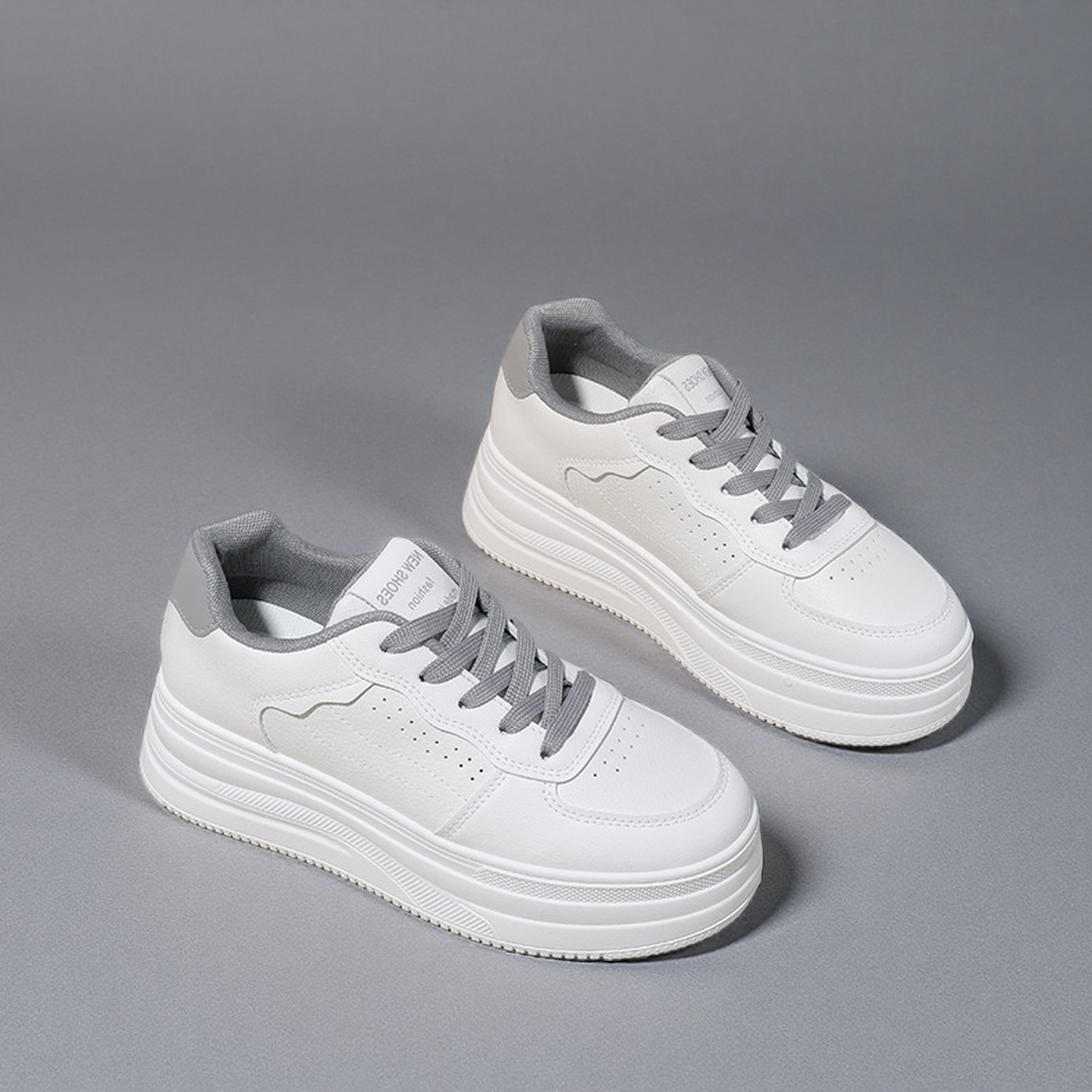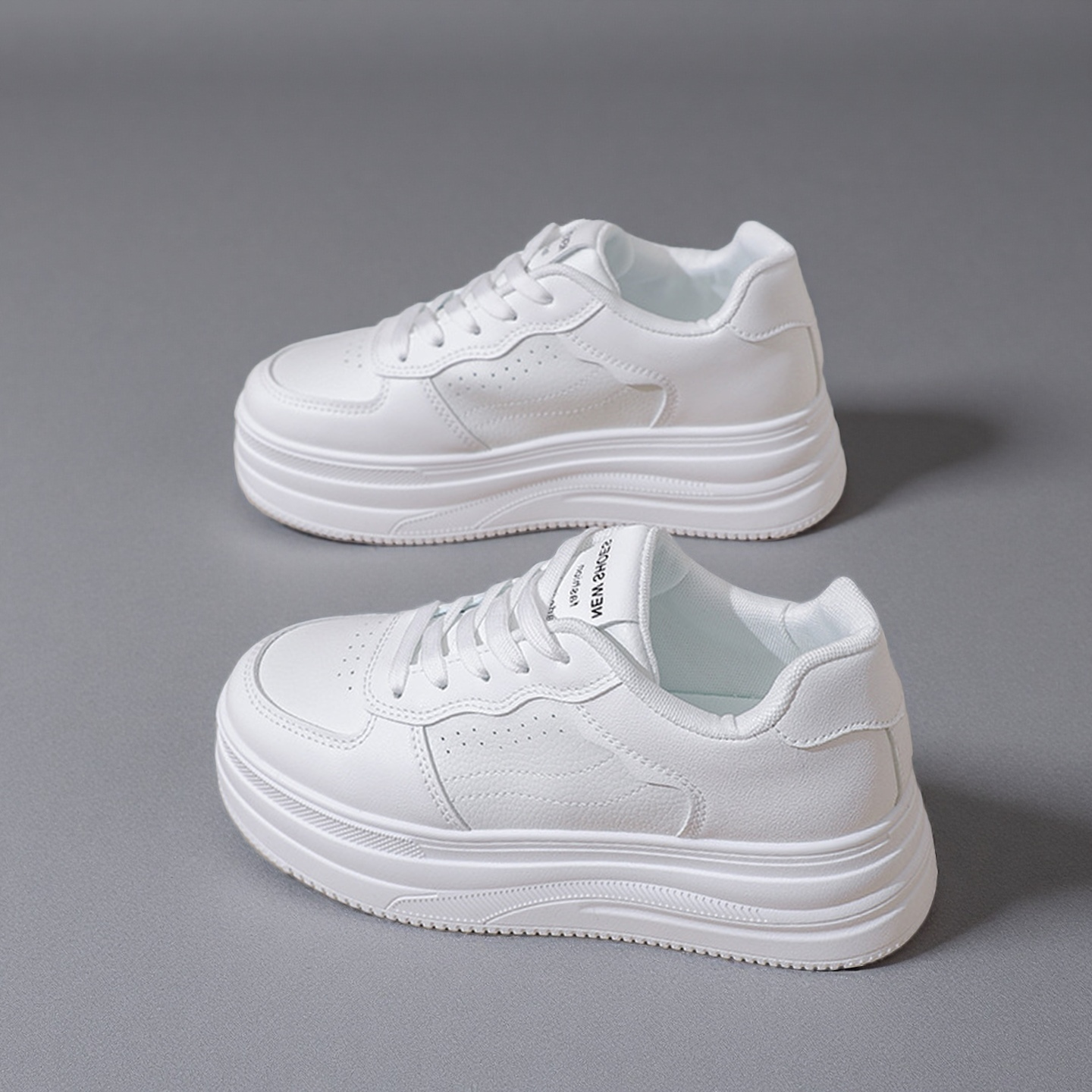 New European-style women’s white sneakers with thick soles, high-top design, breathable material, and casual board shoes-HDA17